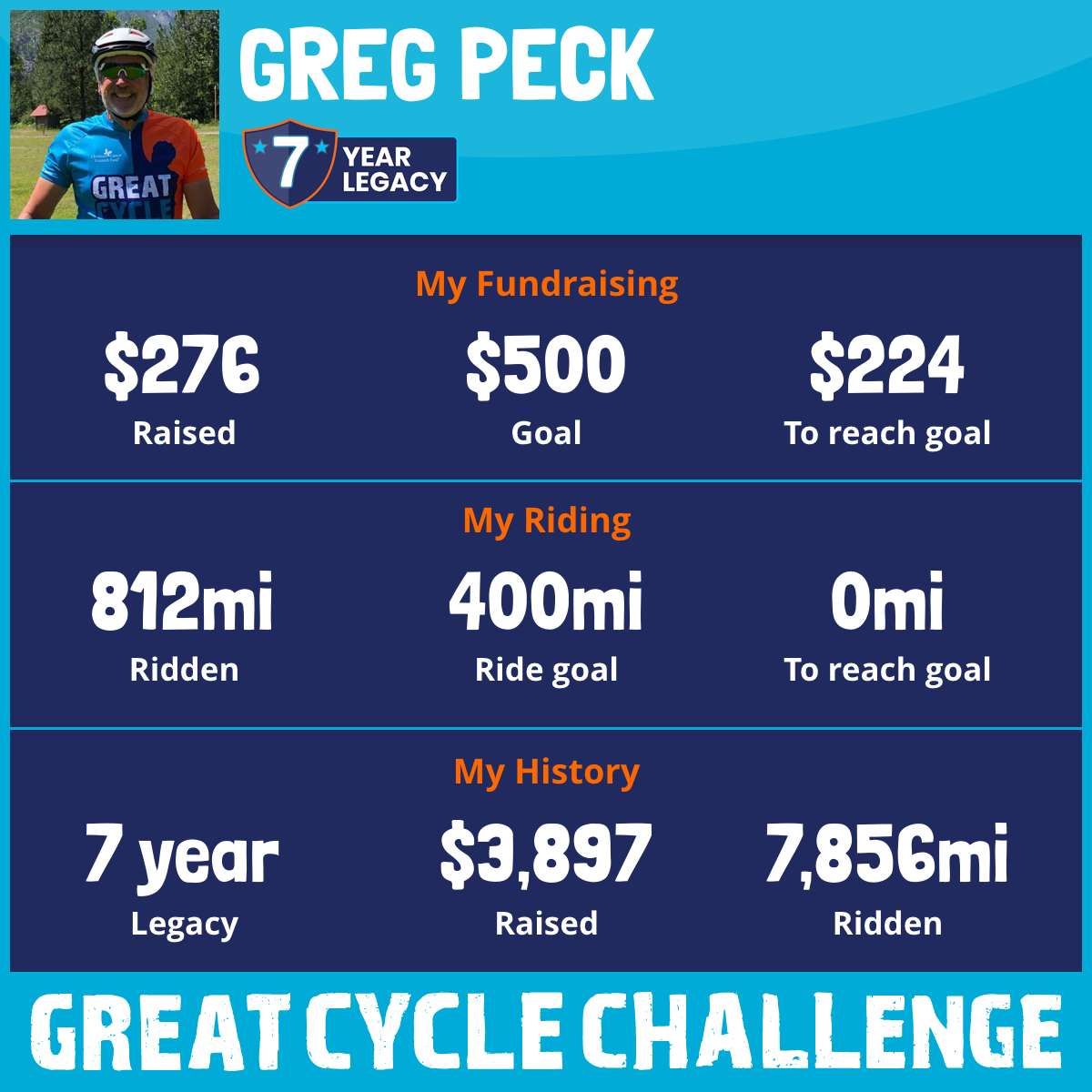 I am riding 400 mi for Mary ann Peck. Please sponsor me and support my challenge to fight kids' cancer and save little lives.