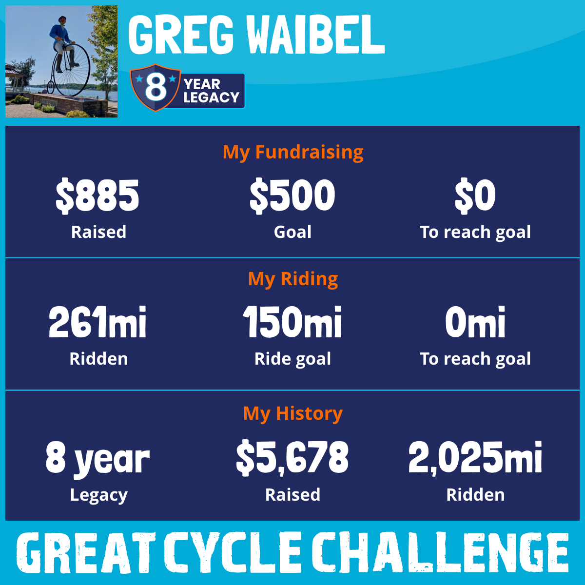 I am riding 150 mi for Laurie, Mike & Steve. Please sponsor me and support my challenge to fight kids' cancer and save little lives.