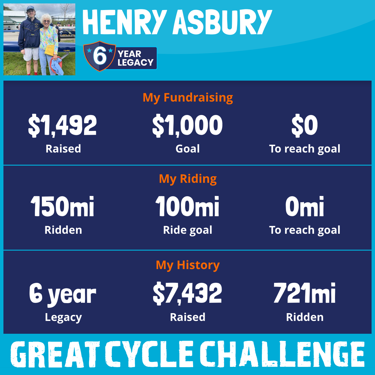 150 mi Ridden$1,492 Raised2025