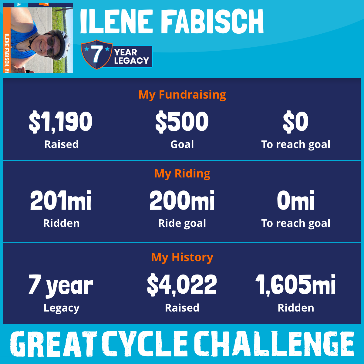 201 mi Ridden$1,190 Raised2025