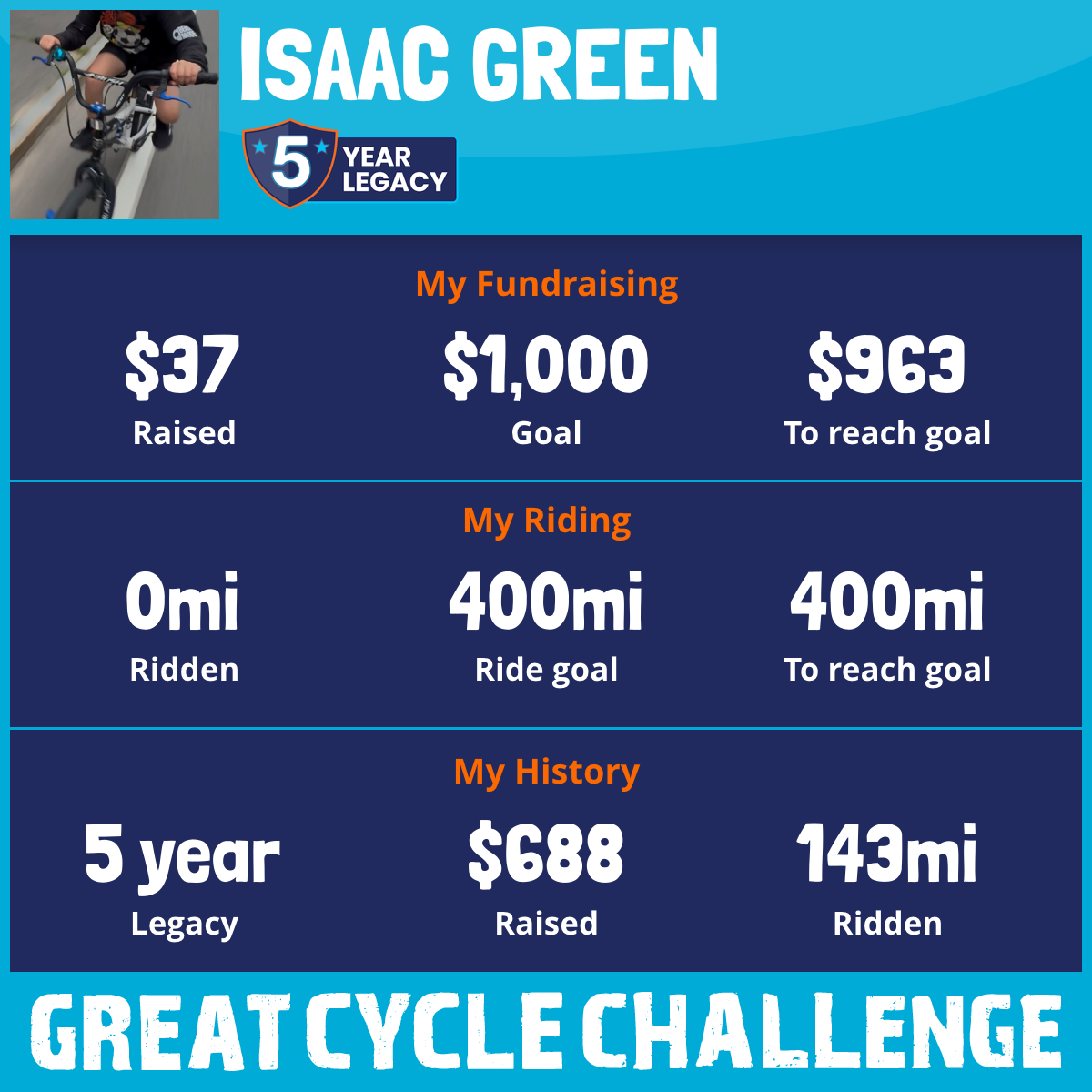 143 mi Ridden$651 Raised2020