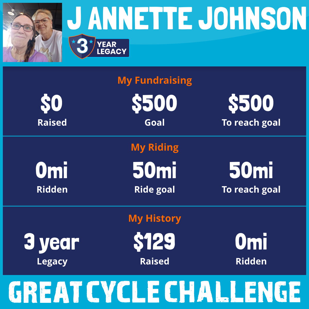 I am riding 50 mi for Dad. Please sponsor me and support my challenge to fight kids' cancer and save little lives.