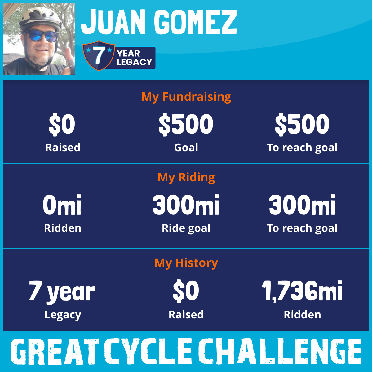 I am riding 300 mi in memory of Roberto, Marlon. Please sponsor me and support my challenge to fight kids' cancer and save little lives.