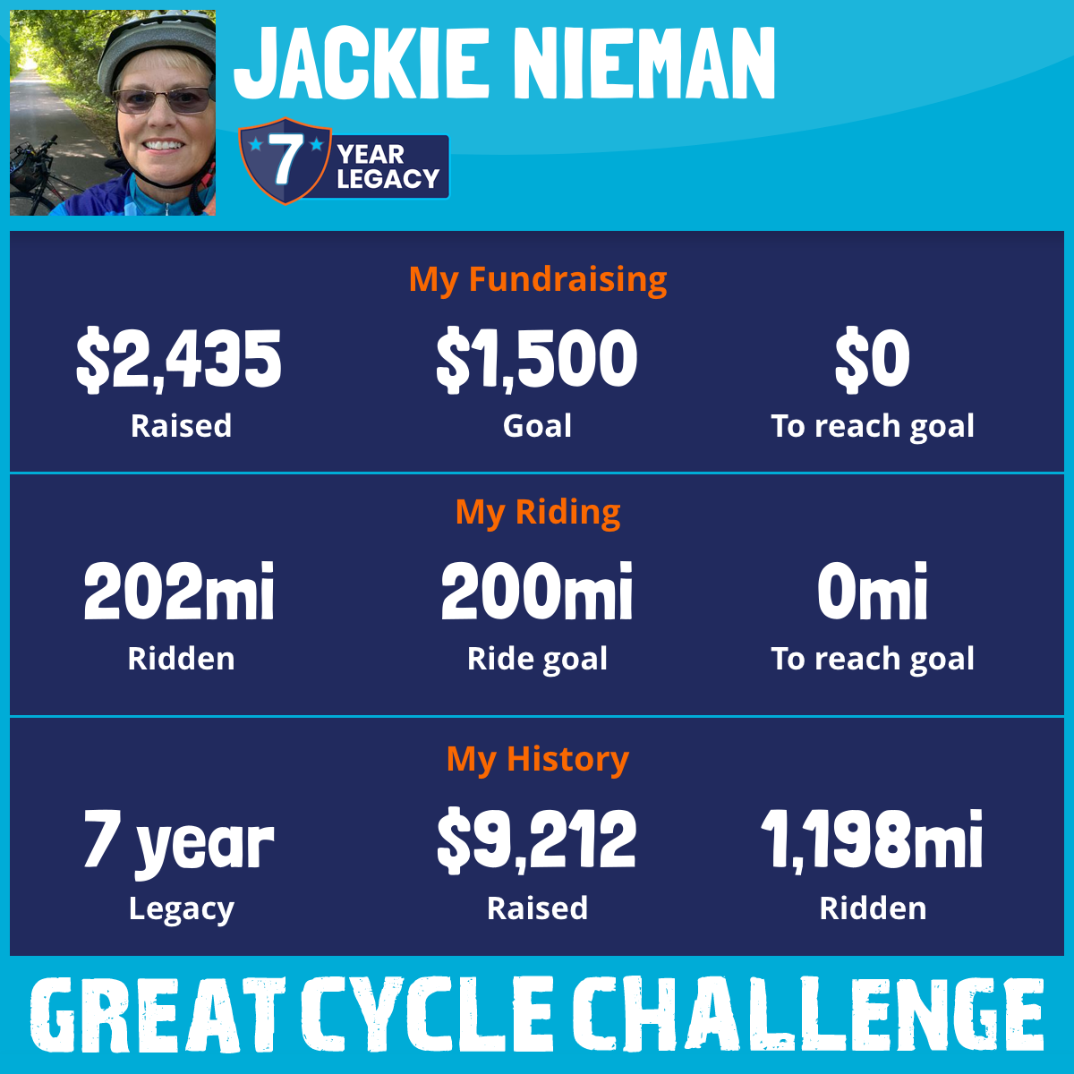 This Is the seventh year that I am taking part in the Great Cycle Challenge to fight kids' cancer! Even though the challenge will happen in September, fundraising begins now. None of my summer miles count, but September is truly a challenge for me. I will, again, be babysitting full time by then and will need to be motivated to ride each evening!