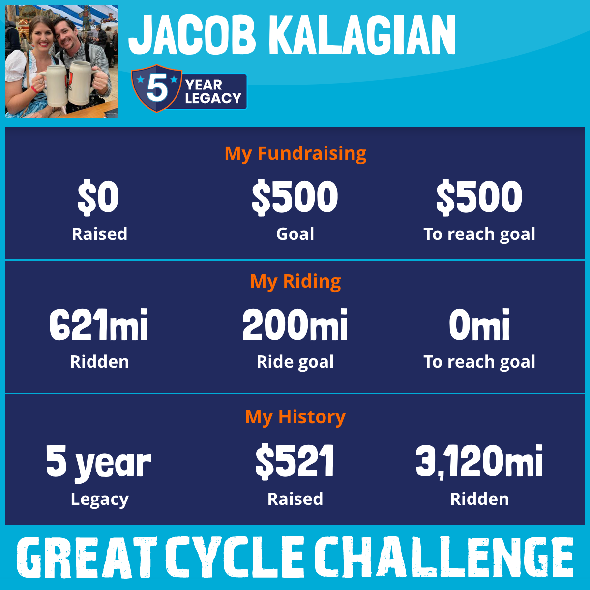 1,050 mi Ridden$521 Raised2020