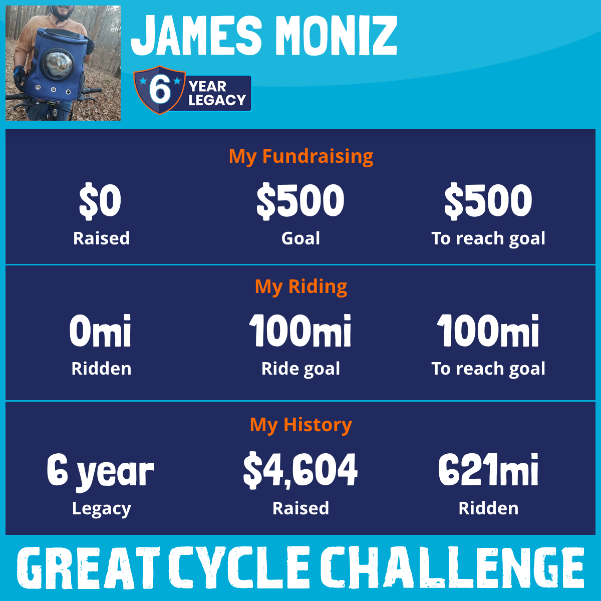 I am riding 100 mi in memory of my dad, Mike Moniz. Please sponsor me and support my challenge to fight kids' cancer and save little lives.