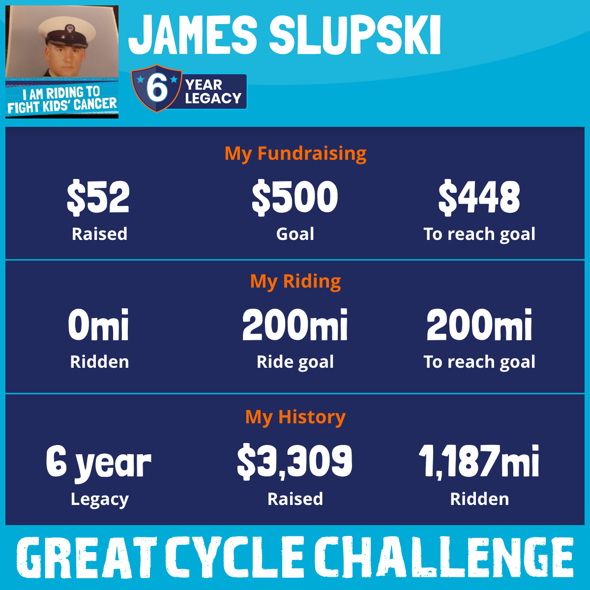 So I am raising funds through my challenge to help these kids and support Children's Cancer Research Fund to allow them to continue their work to develop lifesaving treatments and find a cure for childhood cancer.