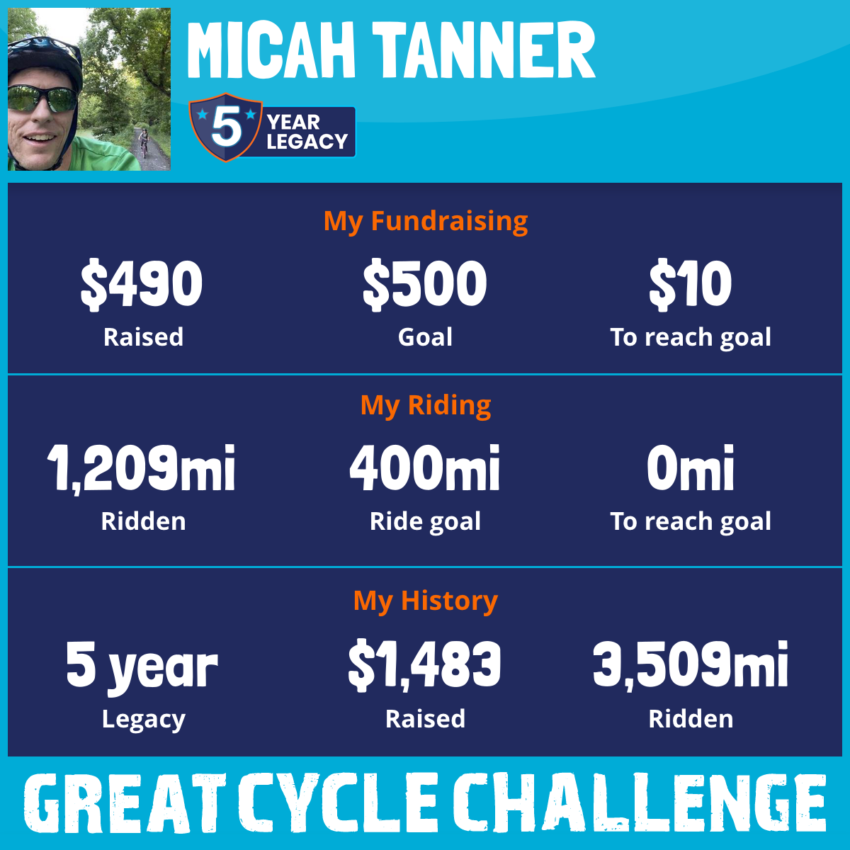I am riding 400 mi in memory of Grandpa Tanner. Please sponsor me and support my challenge to fight kids' cancer and save little lives.