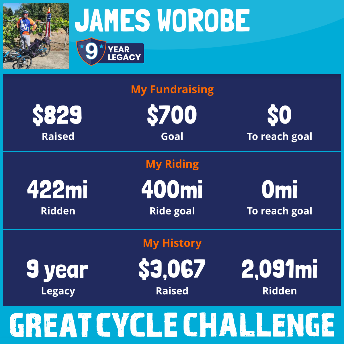 422 mi Ridden$829 Raised2025