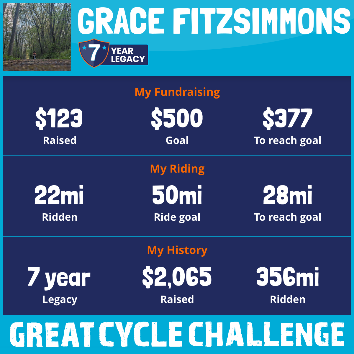 22 mi Ridden$123 Raised2025