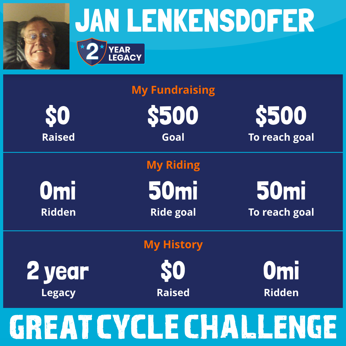 I've raised $0 My goal is $500 Donate Now