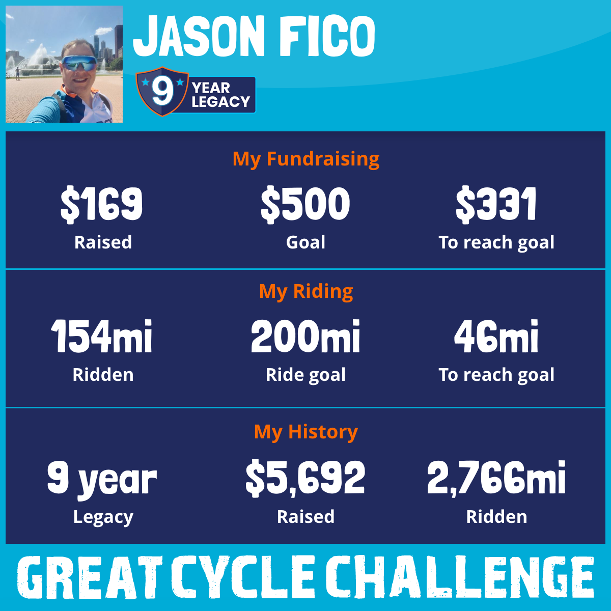 I am riding 200 mi in memory of my brother, DUSTIN FICO. Please sponsor me and support my challenge to fight kids' cancer and save little lives.