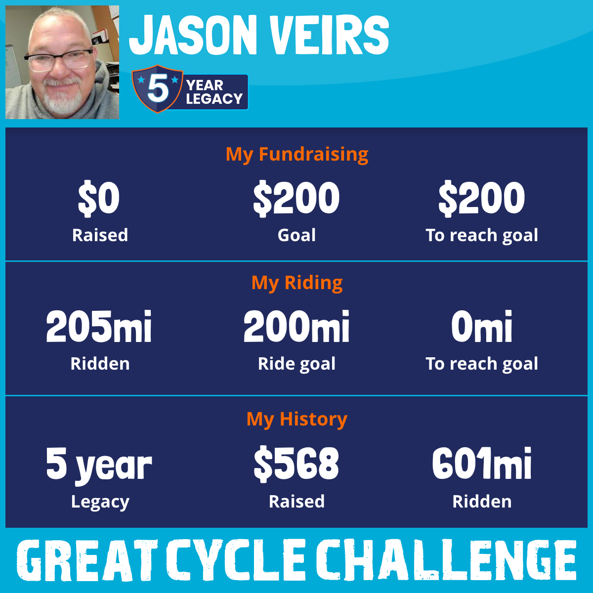 I am riding 200 mi in memory of my dad, Michael D. Veirs. Please sponsor me and support my challenge to fight kids' cancer and save little lives.