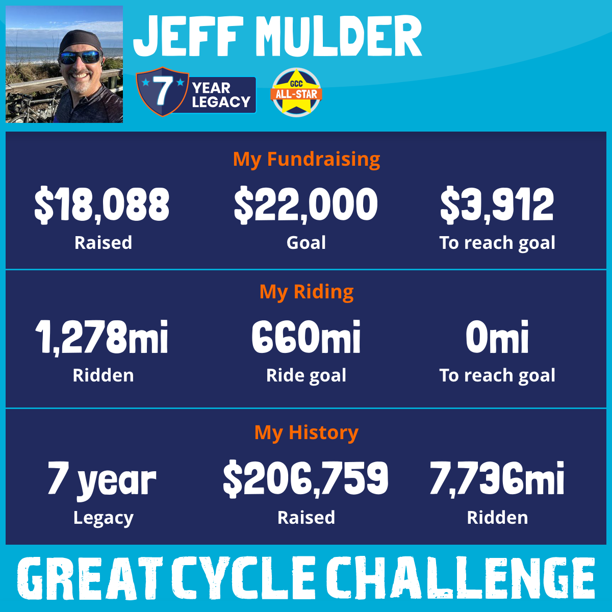 1,278 mi Ridden$18,088 Raised2025