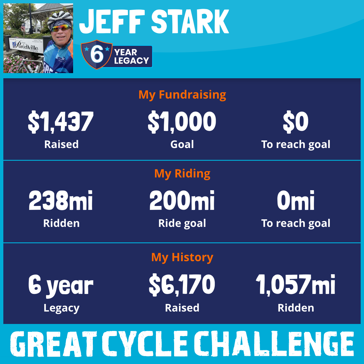"I’m back…" This September, I am taking part in the Great Cycle Challenge to fight kids' cancer for the SIXTH straight year! If you were part of my pit crew in 2018, 2021, 2022, 2023 and 2024 our donations raised an outstanding $5,463 and inspired me to ride 876 miles!!!!!