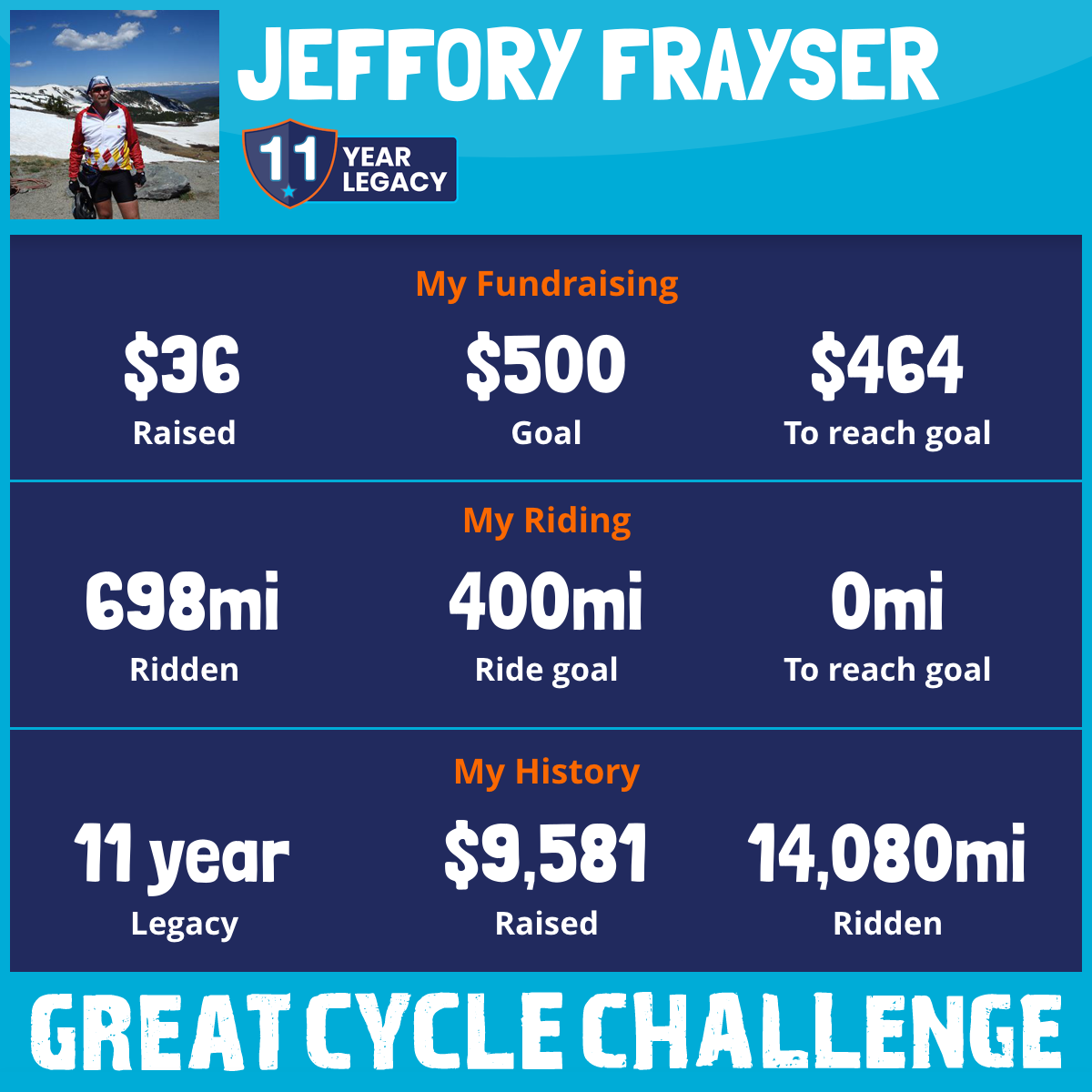 I am riding 400 mi in memory of my brother, Randy. Please sponsor me and support my challenge to fight kids' cancer and save little lives.