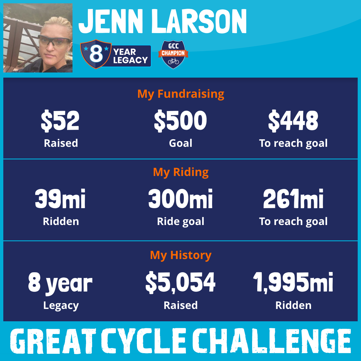I am riding 300 mi to fight kids' cancer and save little lives. Please sponsor me to support my challenge!