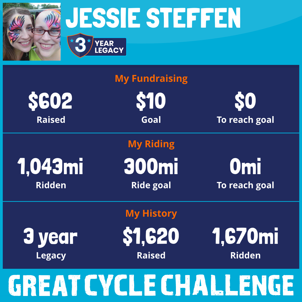 1,043 mi Ridden$602 Raised2025