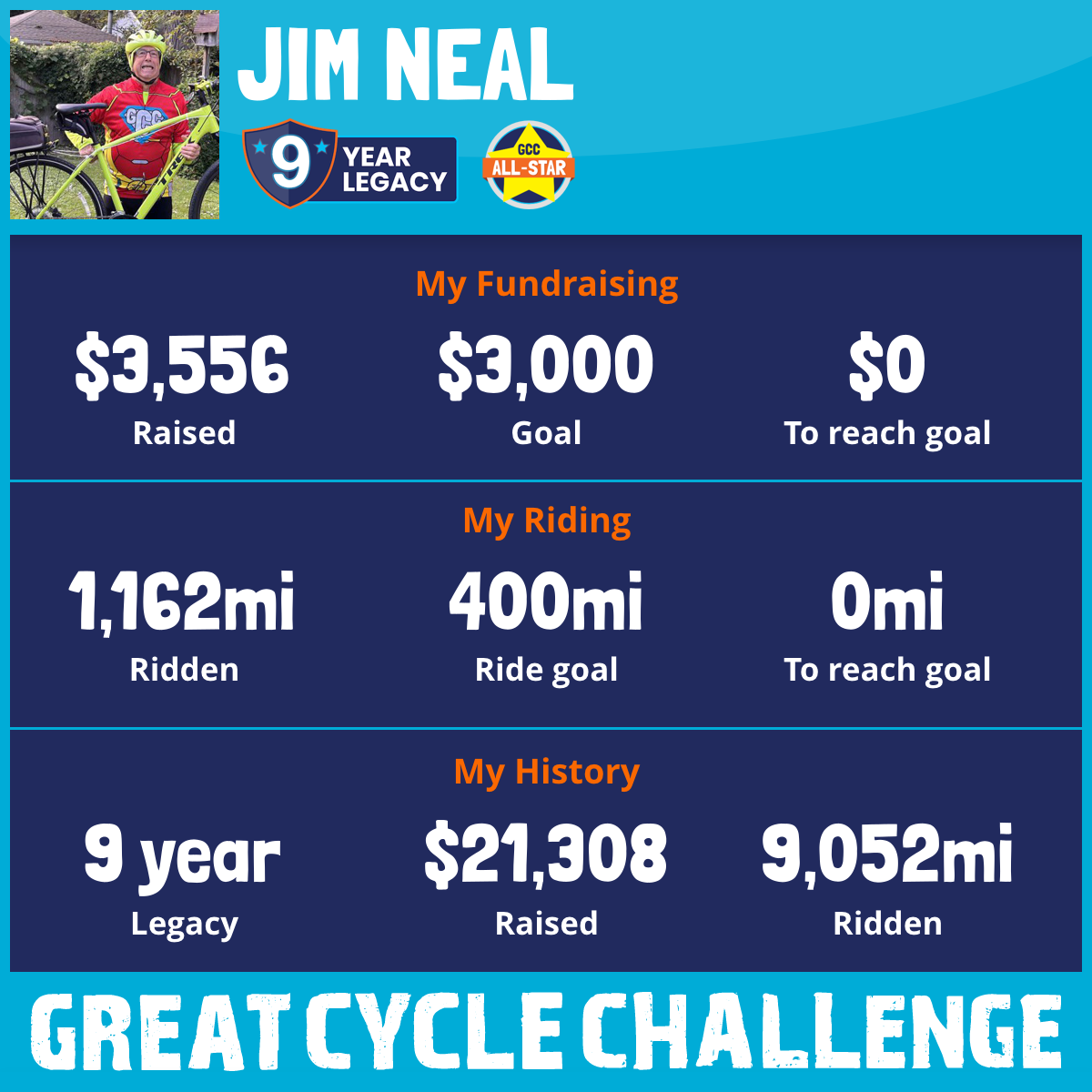 1,162 mi Ridden$3,556 Raised2025
