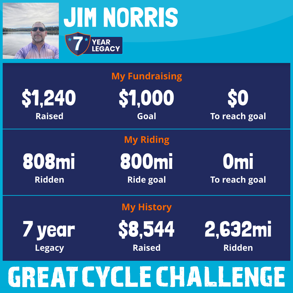 808 mi Ridden$1,240 Raised2025