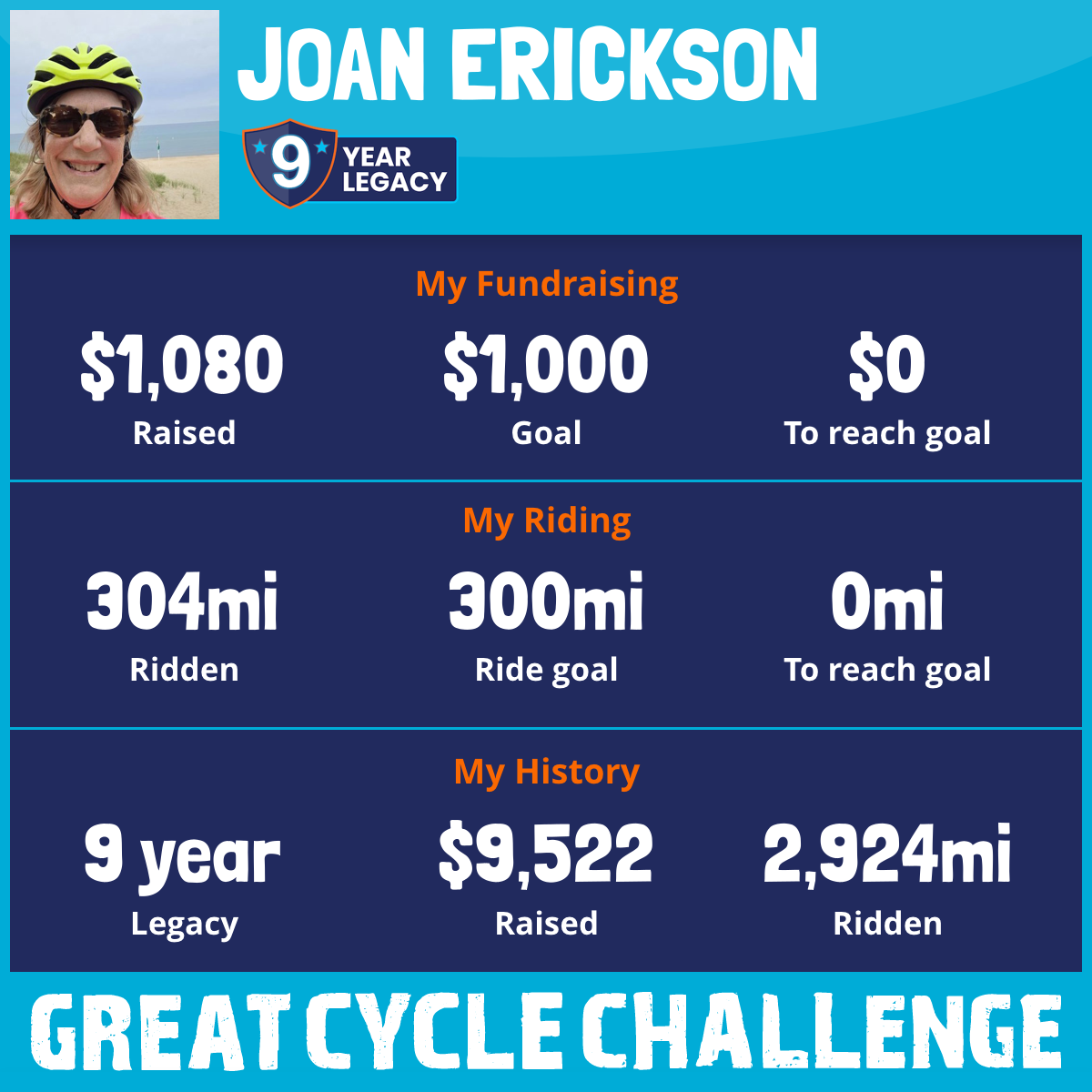 304 mi Ridden$1,080 Raised2025