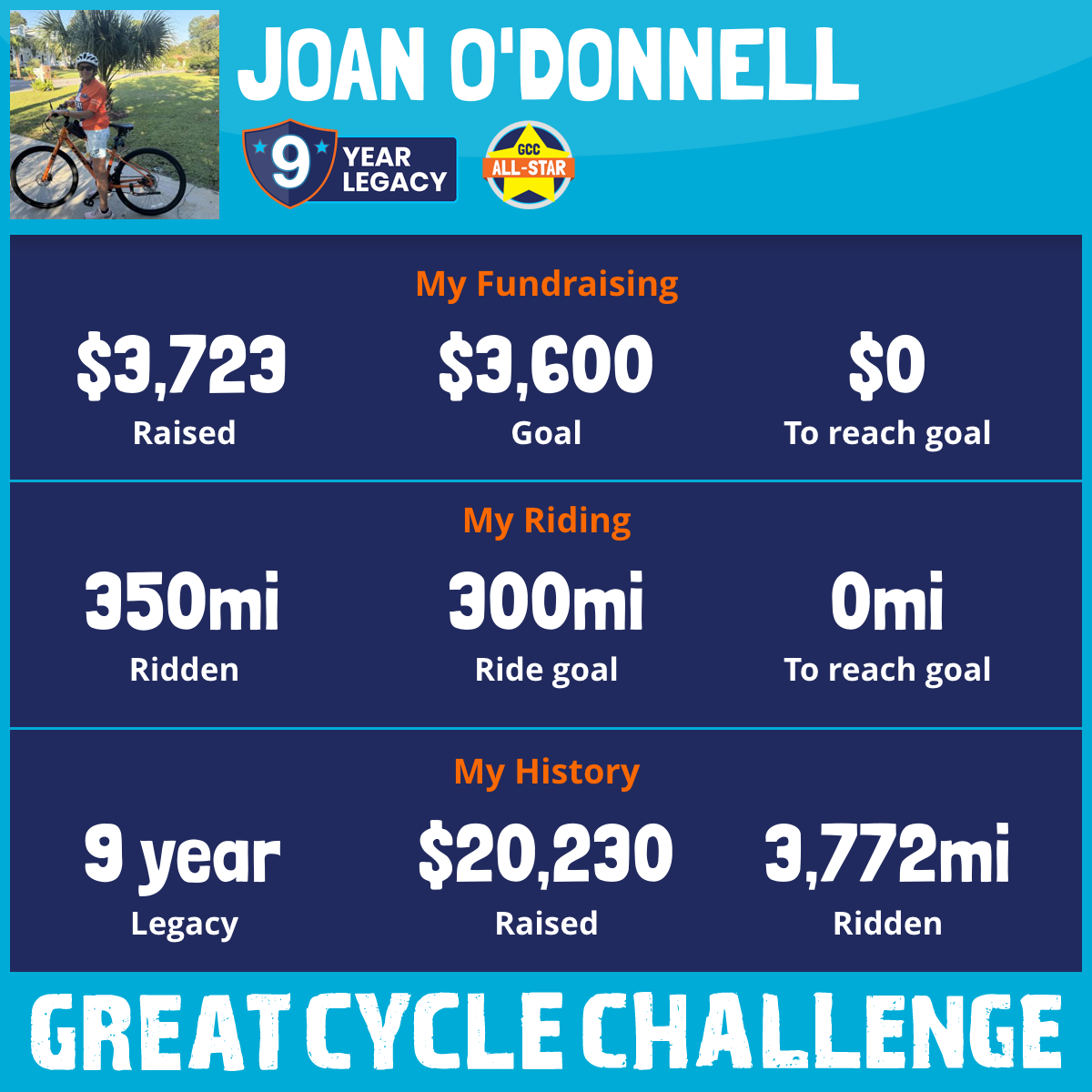 350 mi Ridden$3,723 Raised2025
