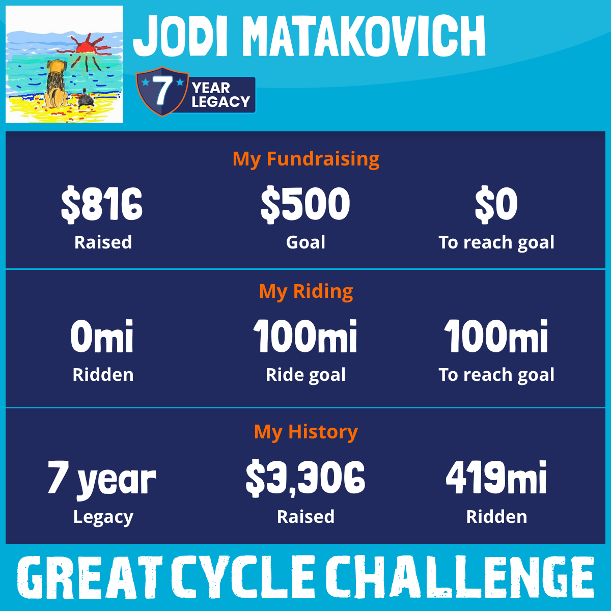 I have had one of those bad days. Just changed my chemo and it's hard to get use to it. I have lived a magical life, and have ridden my bicycle 100 plus mi. seven days in a row! Wow, now I am signing up for 100 in a month, cancer has changed my life, BUT, I have had all but the last 5 years to be free, feel the wind in my face going downhill, get up and ride my bike to school, so I am not complaining. I AM PISSED,thet ANY child doesn't get that chance. To be free,happy, explore. Not just dream of maybe one day as they only know waking up with a tube in their nose, more pokes and sickening medicines. To only know blue sky's from a hospital bed. I have thousands and thousands of adventures on two wheels and thousands raising money for research. Now I will challenge myself to put 100 mi . more on a body well used to give any kid the chance to be FREE. Research is the only reason I am alive today. 20 years ago I would be dead, Little children, like my 4 mo. old Max never got the chance to be a kid. Help me help them. I know people in research. they are passionate about their work and so am I. Get on a bike, or get out your checkbook, or both. 100 mi. is not a drop in the bucket to my cycling legacy, but I crashed into cancers wall. Help me help them TEAR DOWN THAT WALL.!! The kids are what we need to be fighting for. Your kid.....They are warriors, let us be!!!