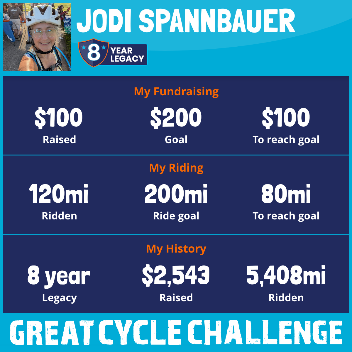 I am riding 200 mi in memory of My brother in law Dick. Please sponsor me and support my challenge to fight kids' cancer and save little lives.