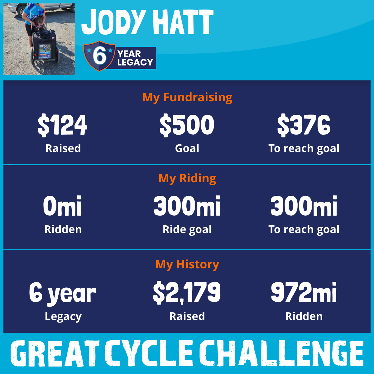 I am riding 300 mi in memory of Mary. Please sponsor me and support my challenge to fight kids' cancer and save little lives.