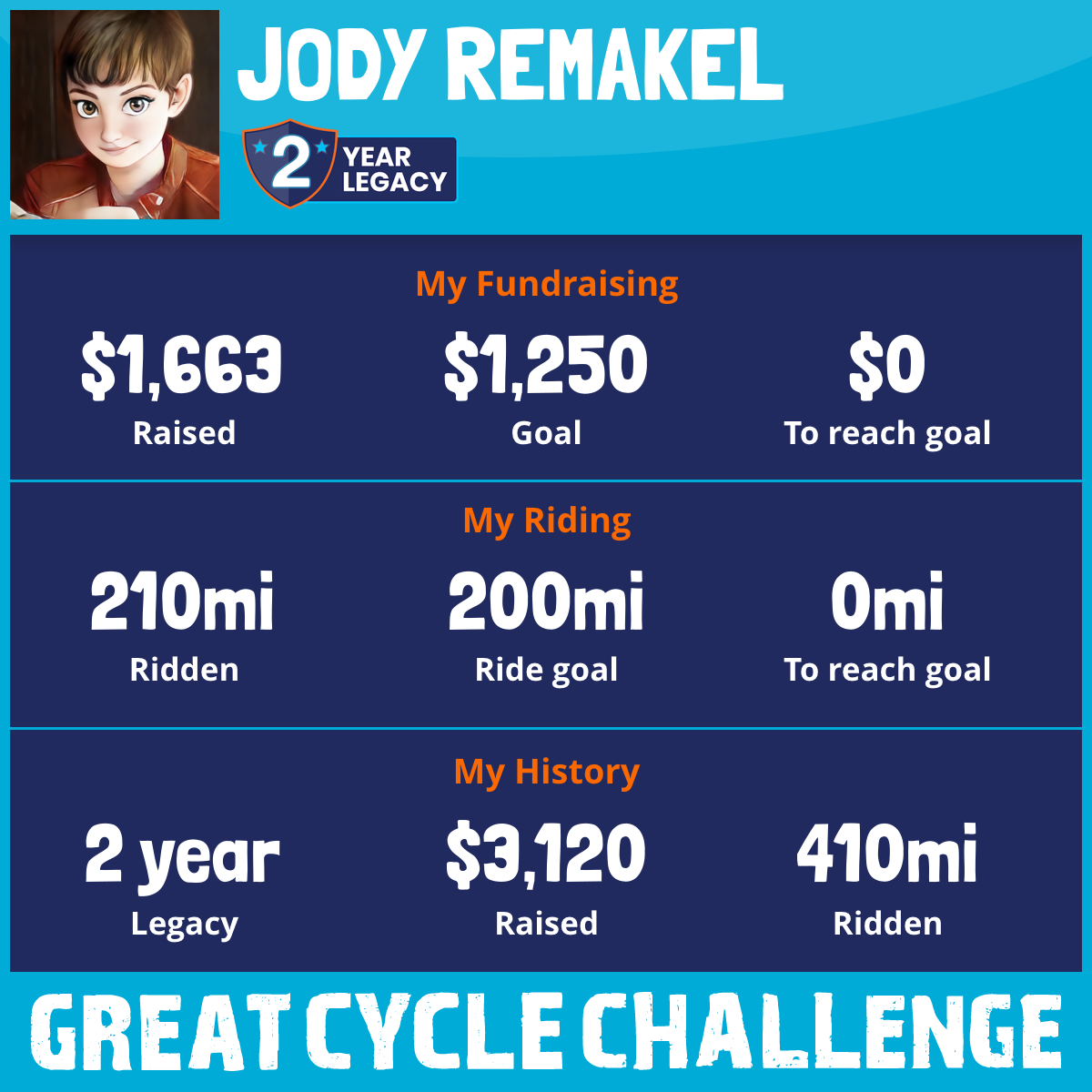 210 mi Ridden$1,663 Raised2025