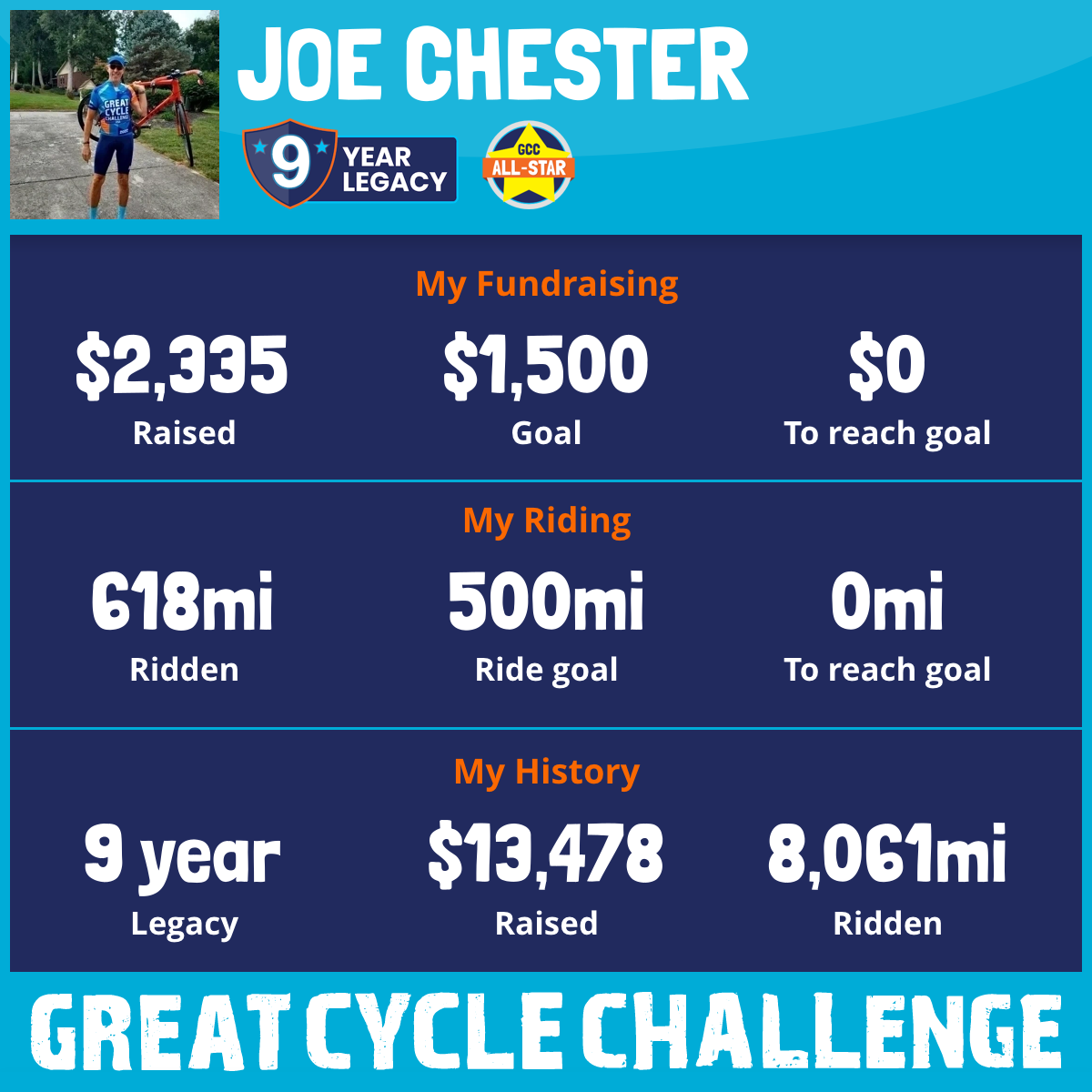 Ok..this September will be my 9th year riding in the Great Cycle Challenge to fight kids cancer. Once again I'll be spending the month riding hopefully 500 miles to raise $1500 or more for these brave kids who are fighting for their lives. Over the previous 8 years you've supported me in riding nearly 7500 miles and donating over $11,400. You all are amazing!