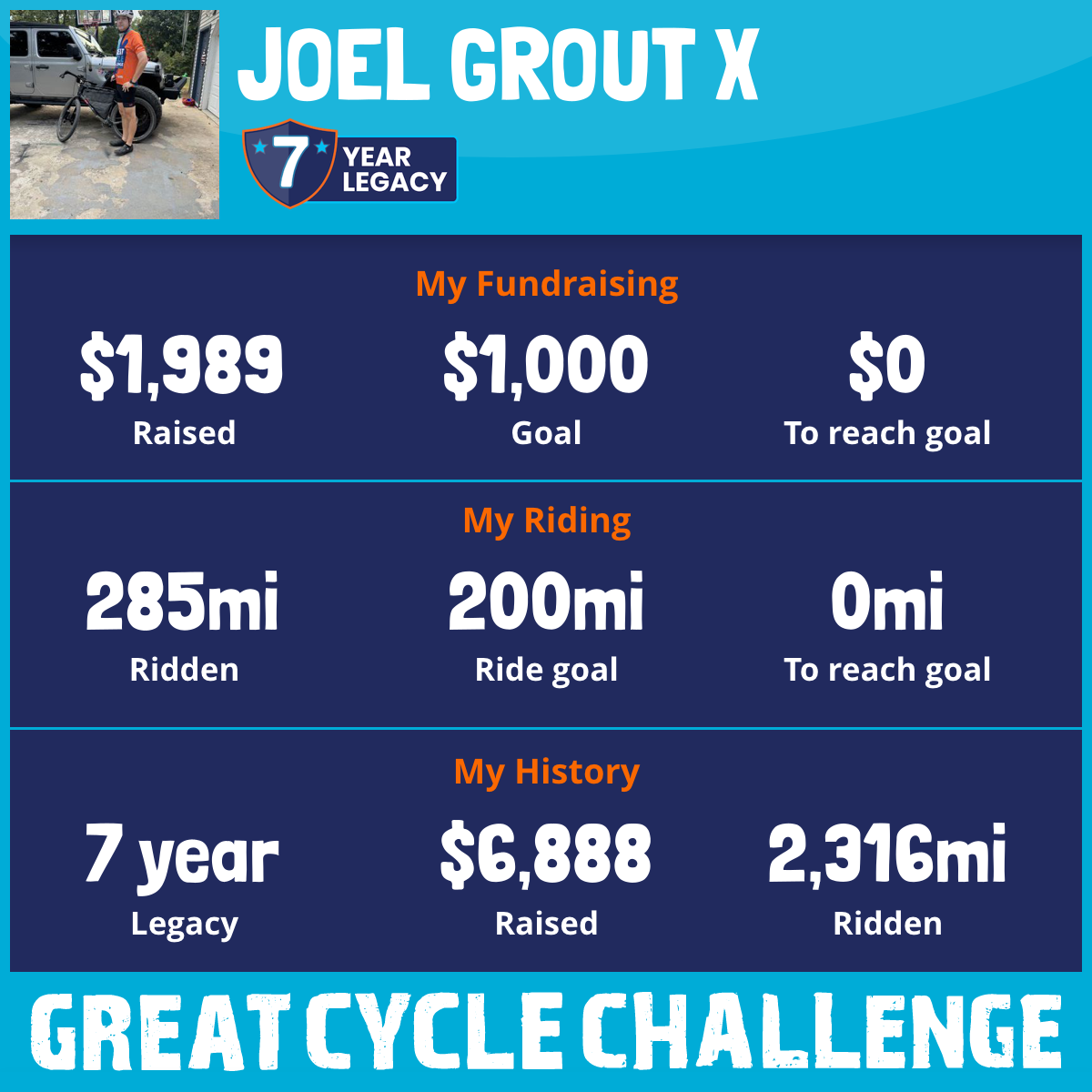 285 mi Ridden$1,989 Raised2025
