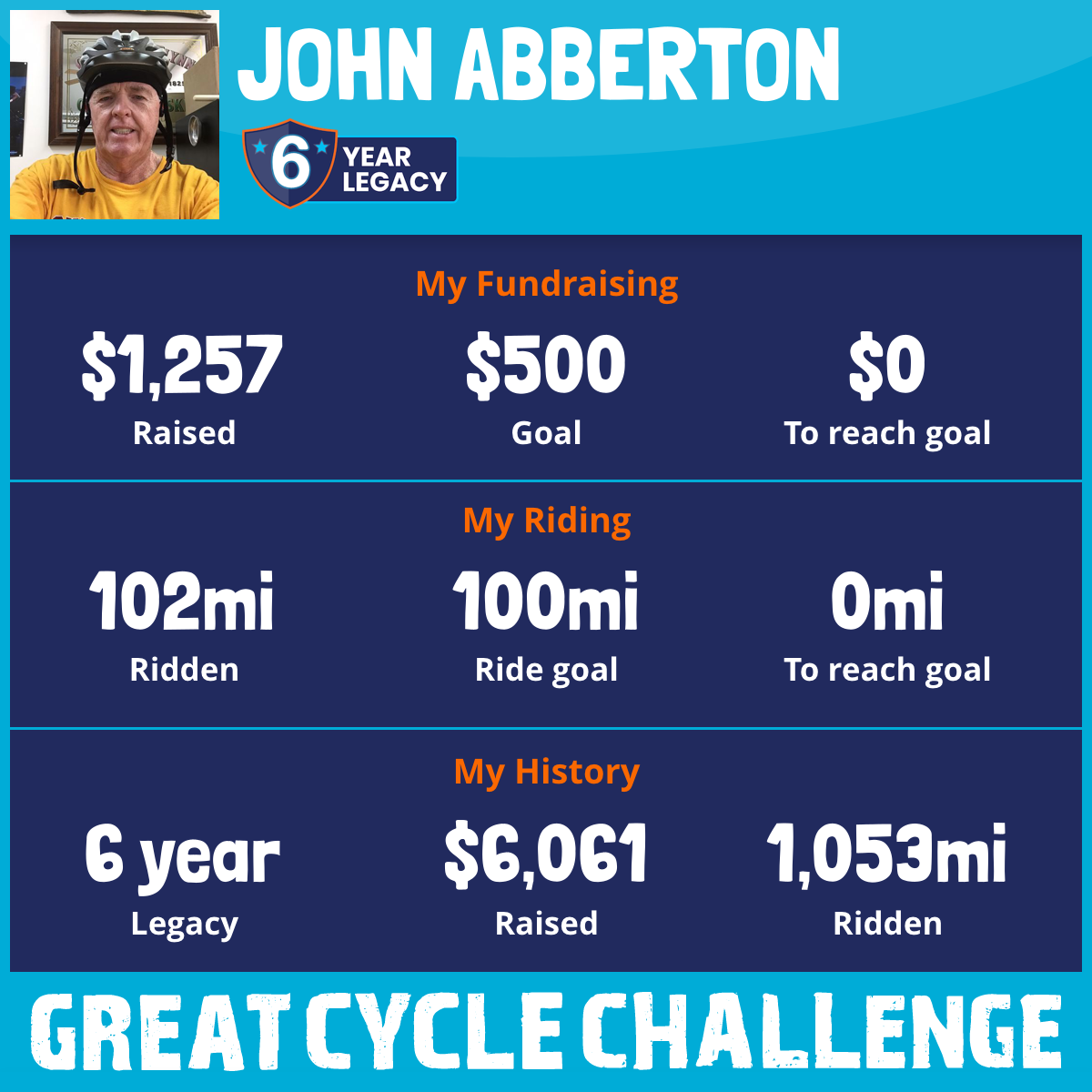 102 mi Ridden$1,257 Raised2025