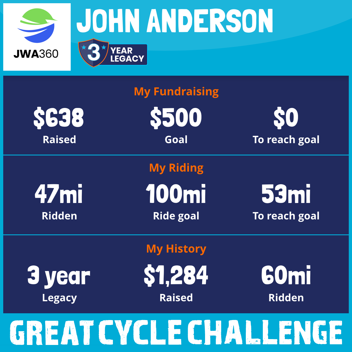 This September, 2025, I am taking part in the Great Cycle Challenge to fight kids' cancer!