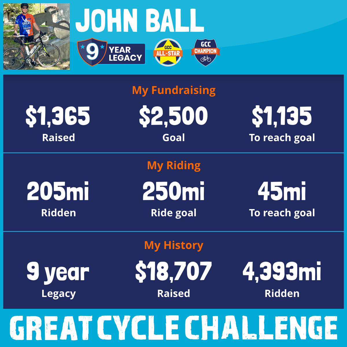 205 mi Ridden$1,365 Raised2025