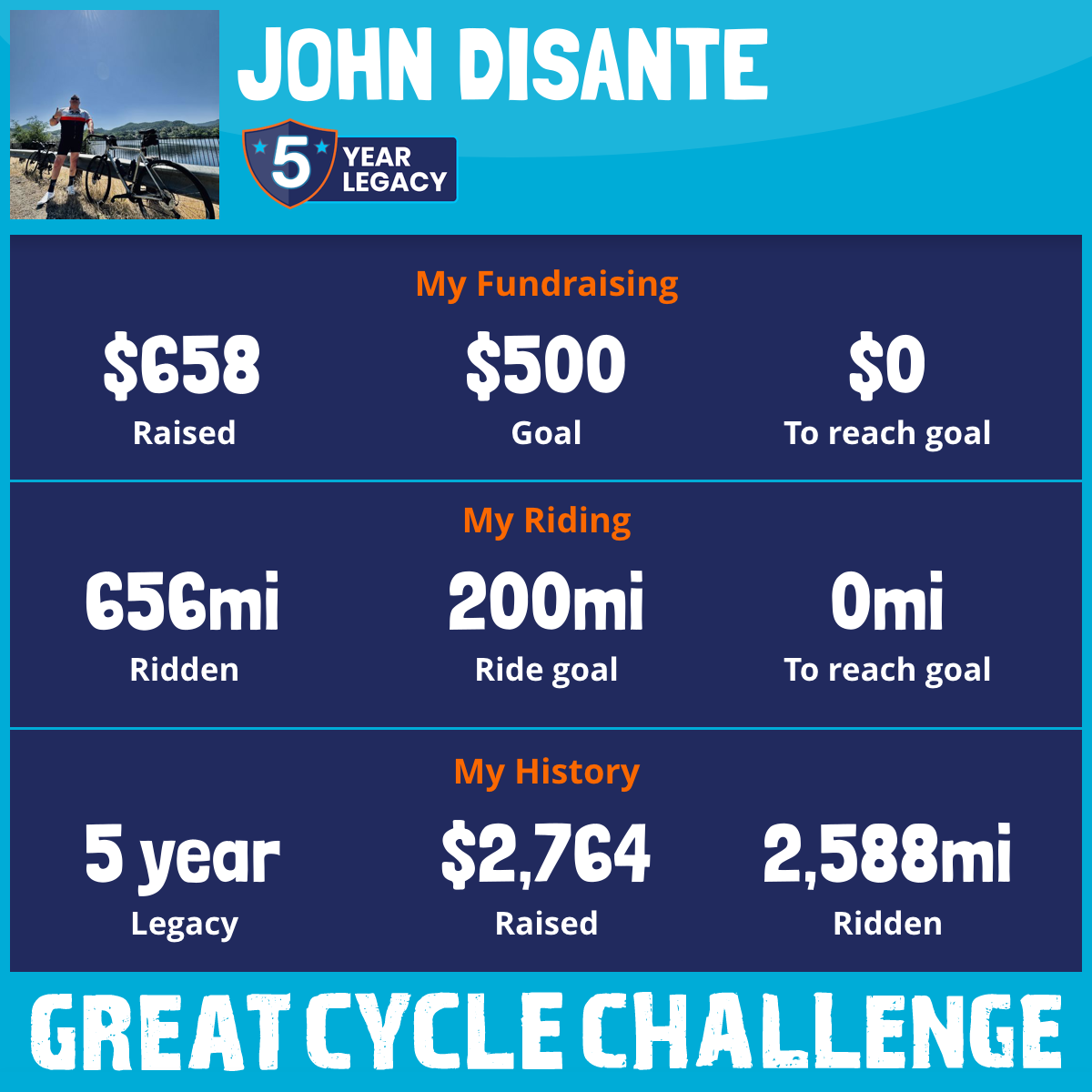I am riding 200 mi for Joe DiSante. Please sponsor me and support my challenge to fight kids' cancer and save little lives.
