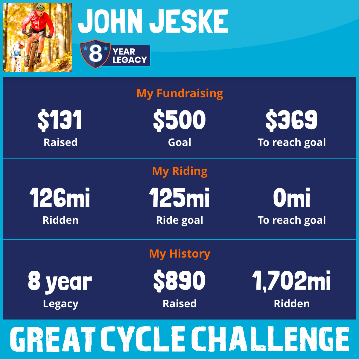 I am riding 125 mi to fight kids' cancer and save little lives. Please sponsor me to support my challenge!