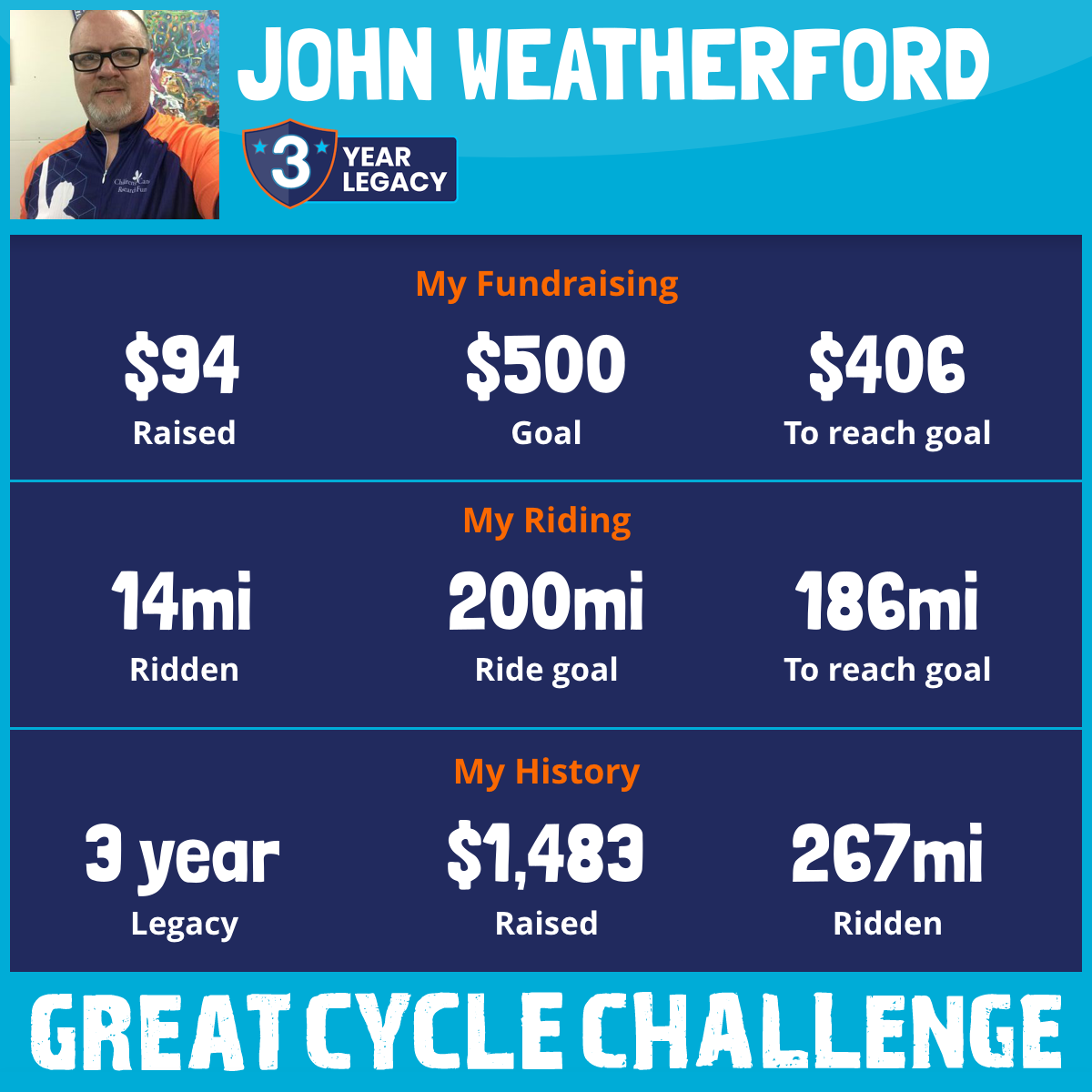 I am riding 200 mi to fight kids' cancer and save little lives. Please sponsor me to support my challenge!