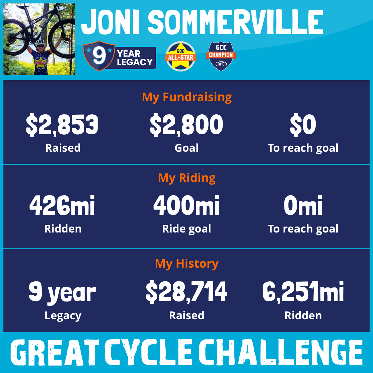 This sept, I am taking part in my 9th Great Cycle Challenge to fight kids' cancer! In the first 8 years I have raised $25816.17!😁 and have ridden over 5825 miles. I have been overwhelmed by the generosity of my family and friends. This experience continues to impact me and has been life changing! Please consider giving for this great cause! Cancer sucks! Please read tribute below.