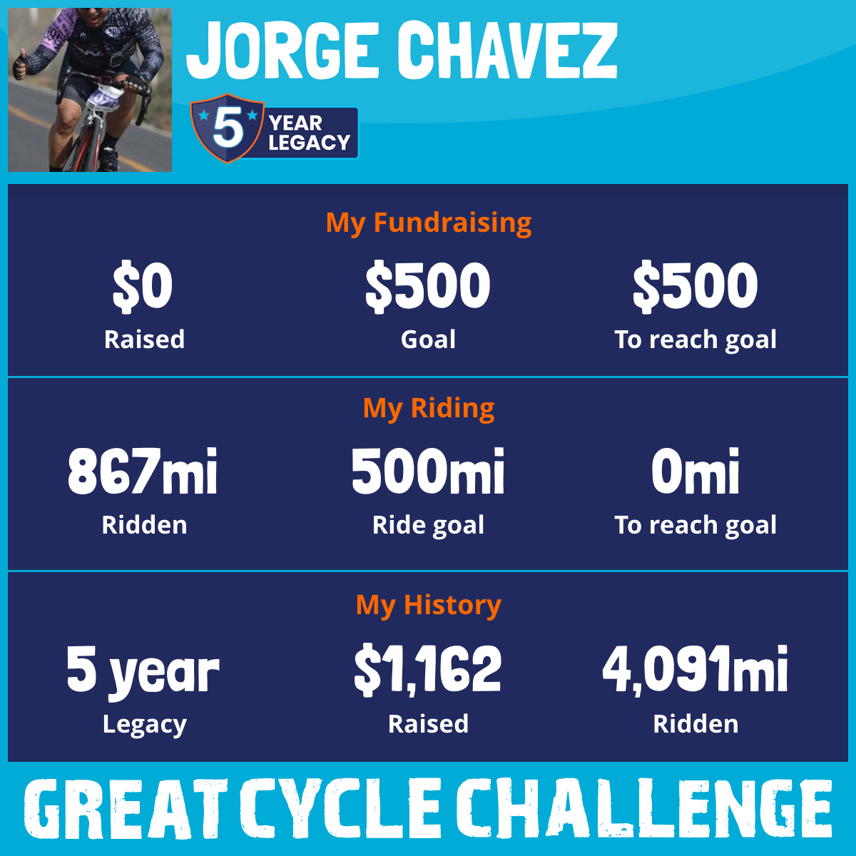 My challenge and goal is to ride 500 miles and raise $500 by the end of September.