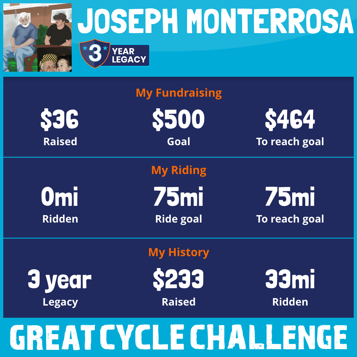 I am riding 75 mi in memory of my grandfather, Joe SanRoman. Please sponsor me and support my challenge to fight kids' cancer and save little lives.