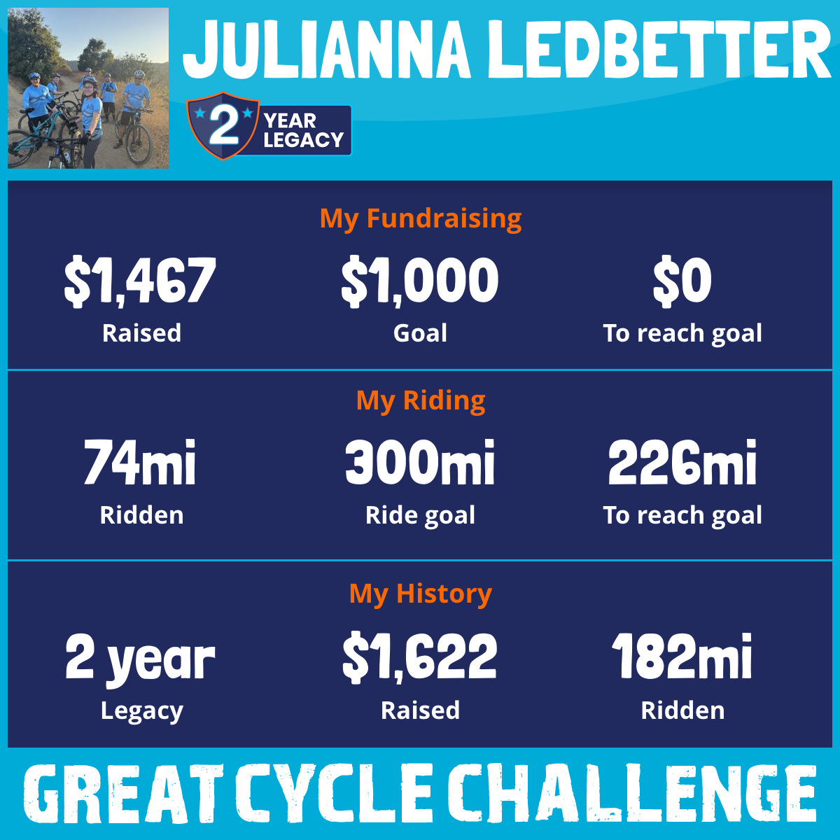 74 mi Ridden$1,467 Raised2025