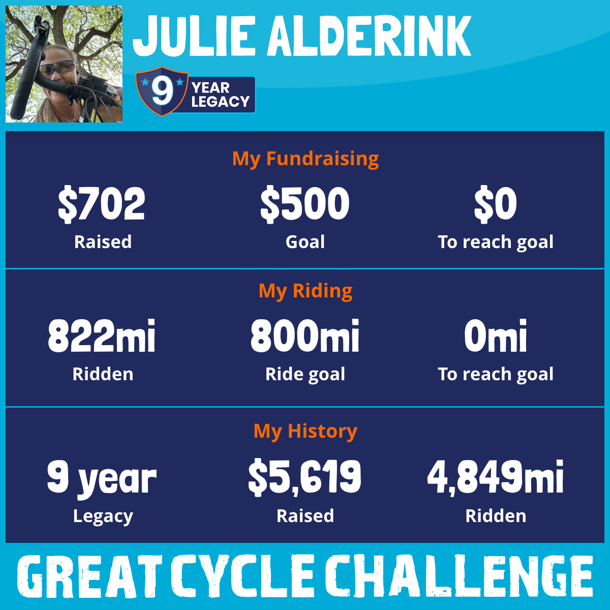 I am riding 800 mi in memory of Katey Kocer. Please sponsor me and support my challenge to fight kids' cancer and save little lives.