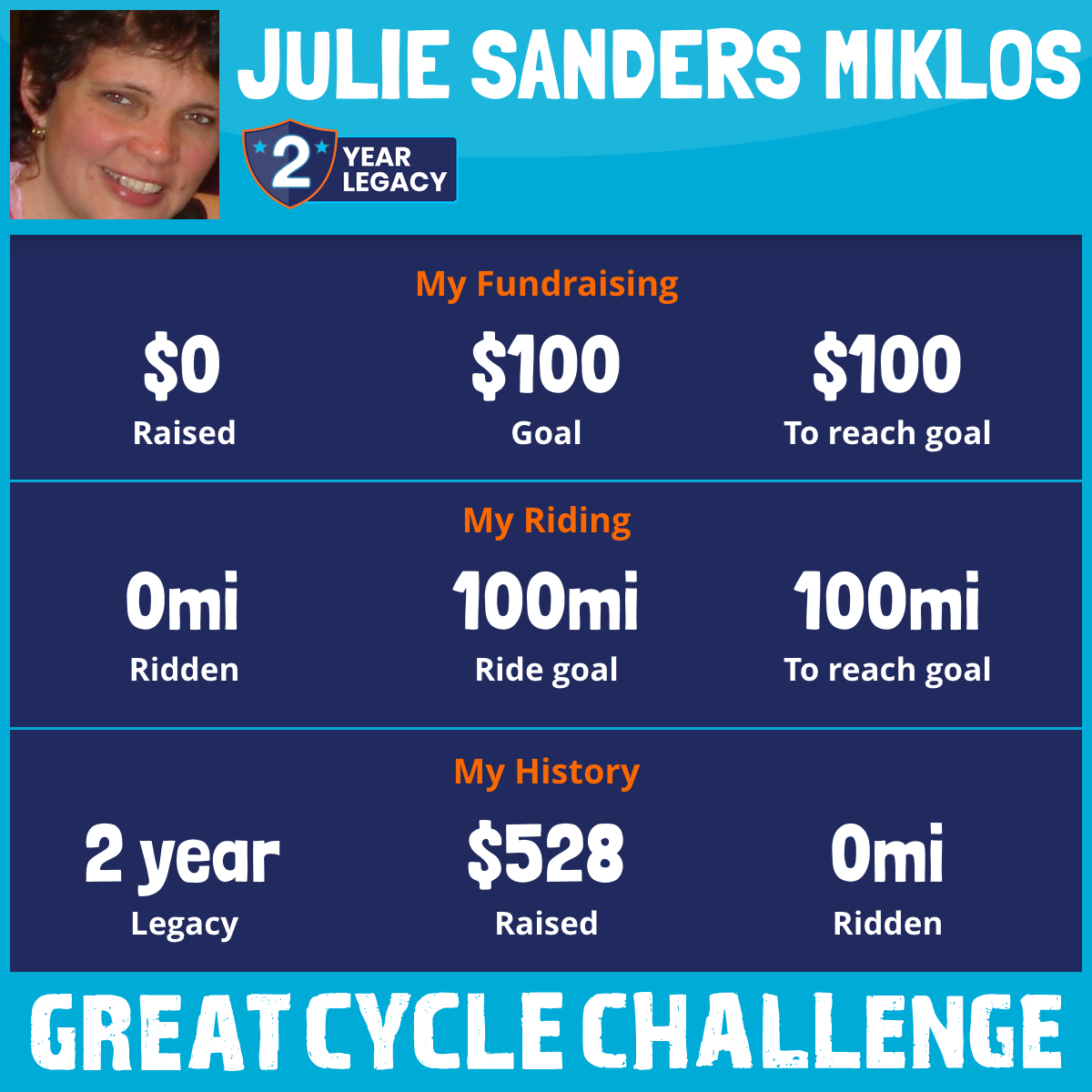 I am riding 100 mi to fight kids' cancer and save little lives. Please sponsor me to support my challenge!