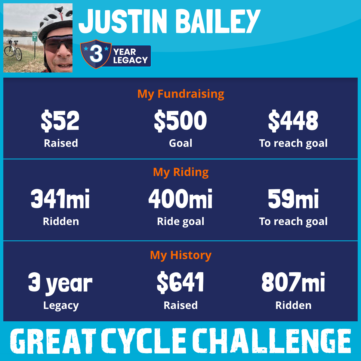 Riding in memory of my Mom Judy Bailey and in Honor of my sister Heather Bailey and in Honor of Grace Crowell.