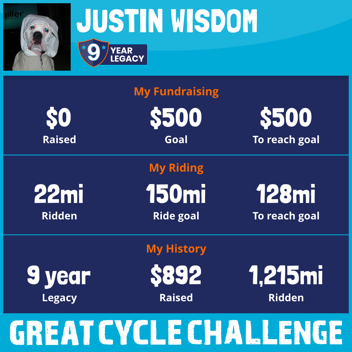 I am riding 150 mi for All who have cancer. Please sponsor me and support my challenge to fight kids' cancer and save little lives.