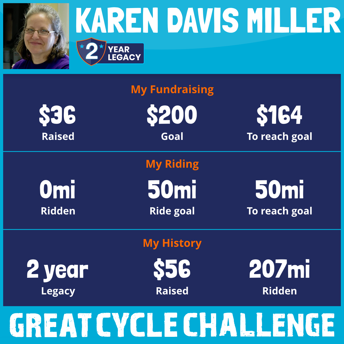 I am riding 50 mi in memory of Sue Scheets. Please sponsor me and support my challenge to fight kids' cancer and save little lives.