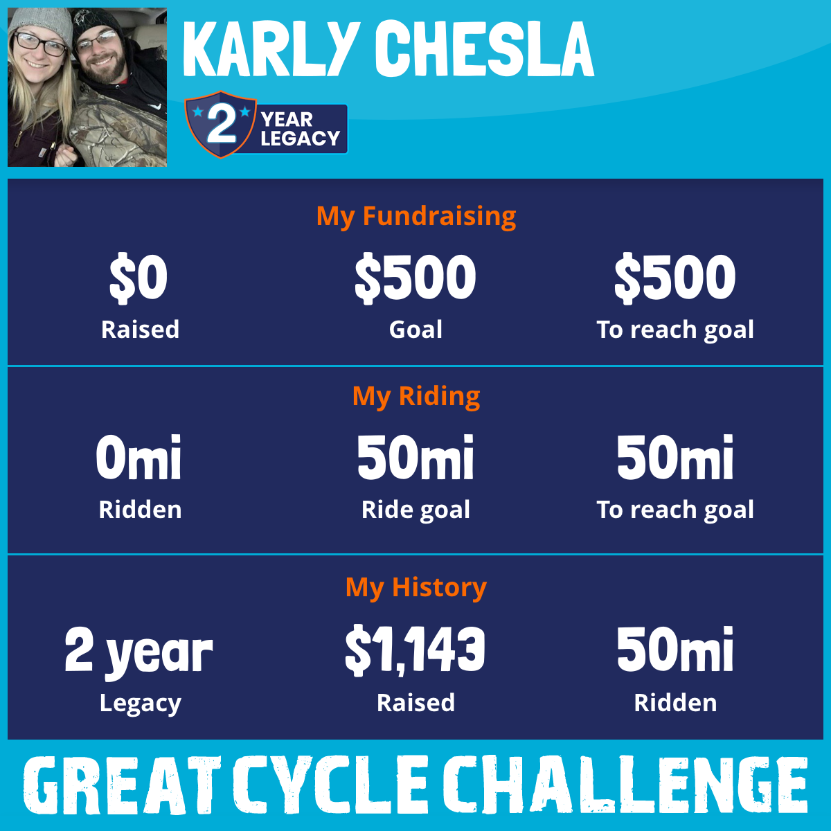50 mi Ridden$1,143 Raised2020
