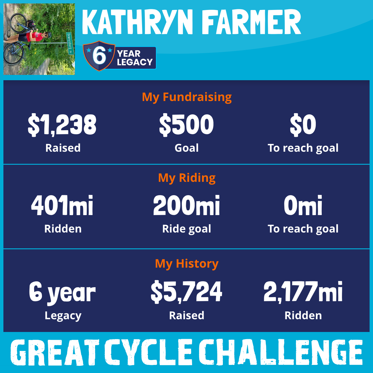 Kathryn James was a first cousin who died of childhood leukemia at age five. My daughter, Elizabeth, persevered with many challenging health issues since birth. Her spirit and life achievements inspire me to continue with this wonderful GCC community.
