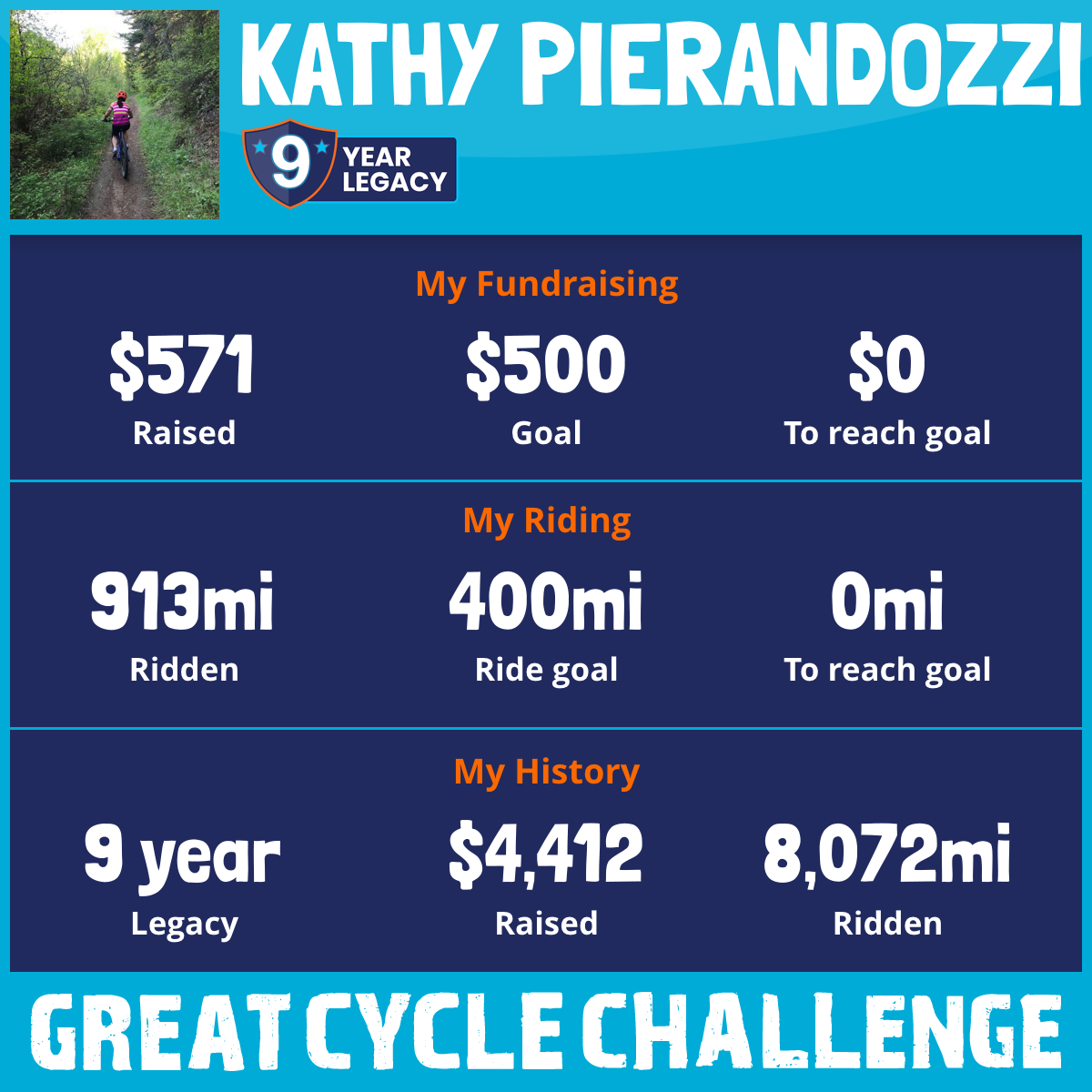 I am riding 400 mi for my friend, Carla Pierandozzi, Darla Bowley, Susan Newstat David Everingham. Please sponsor me and support my challenge to fight kids' cancer and save little lives.